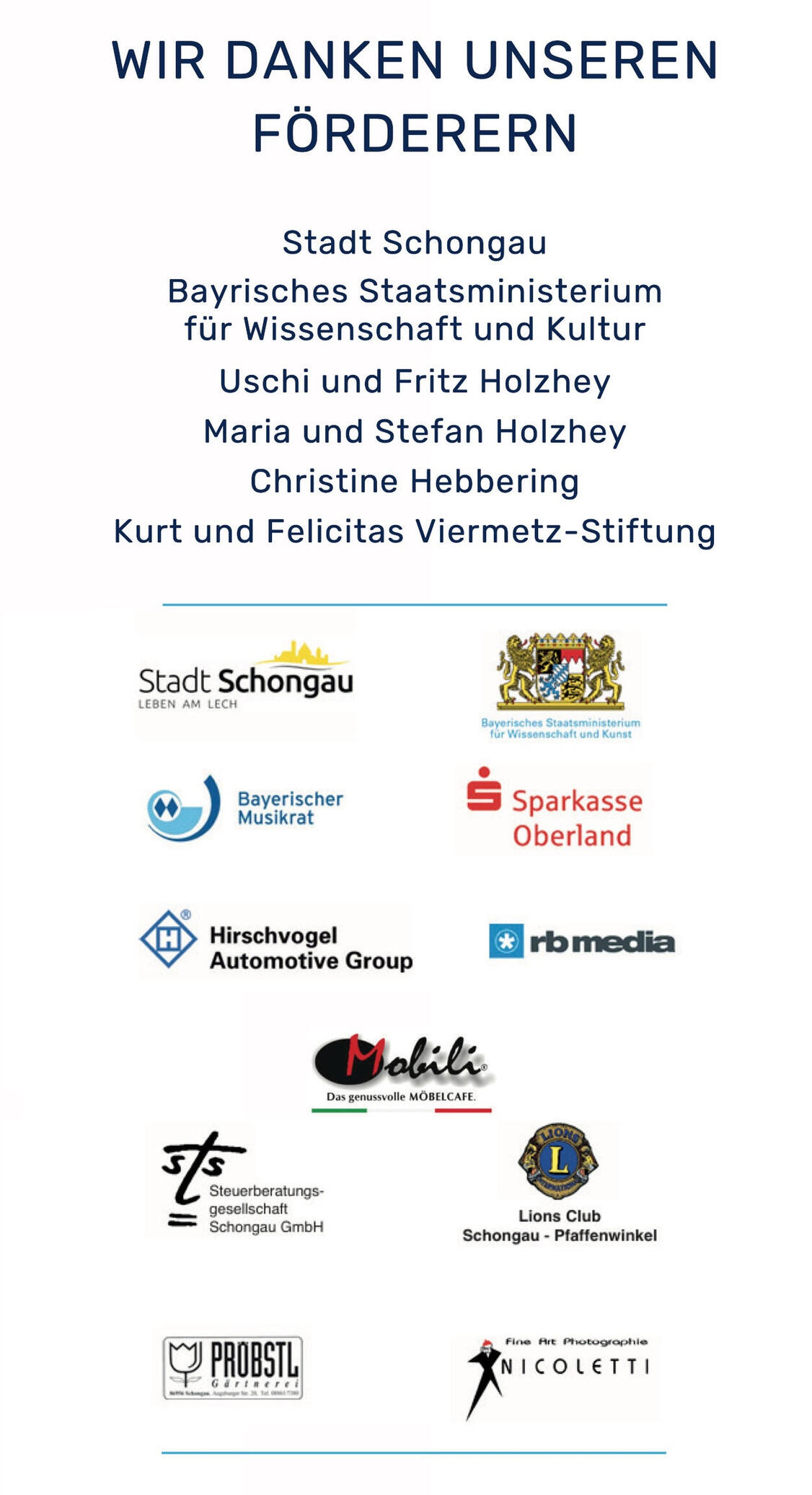 Auch in diesem Jahr dürfen sich die Besucherinnen und Besucher der Konzertreihe Festlicher Sommer in der Wies auf ein vielfältiges Konzertprogramm freuen, in dem geistliche und weltliche Werke in kleiner Besetzung, aber auch in großen Chor- und Instrumentalkonzerten ihren Platz finden. Ebenso bieten die Konzerte ein Podium für junge aufstrebende Künstler und einen Ort der Verschmelzung von Laienarbeit und professionellen Künstlerinnen und Künstlern. Ein so hohes musikalisches Niveau und ein so großes Engagement für die Kultur in der Region ist nicht selbstverständlich. Ich bin mir sicher, dass die Gotteshäuser des Pfaffenwinkels wieder den stimmungsvollen Rahmen für eindrucksvolle musikalische Erlebnisse bieten werden, für die ich allen Mitwirkenden gutes Gelingen und unserem geschätzten Publikum viel Freude wünsche.
